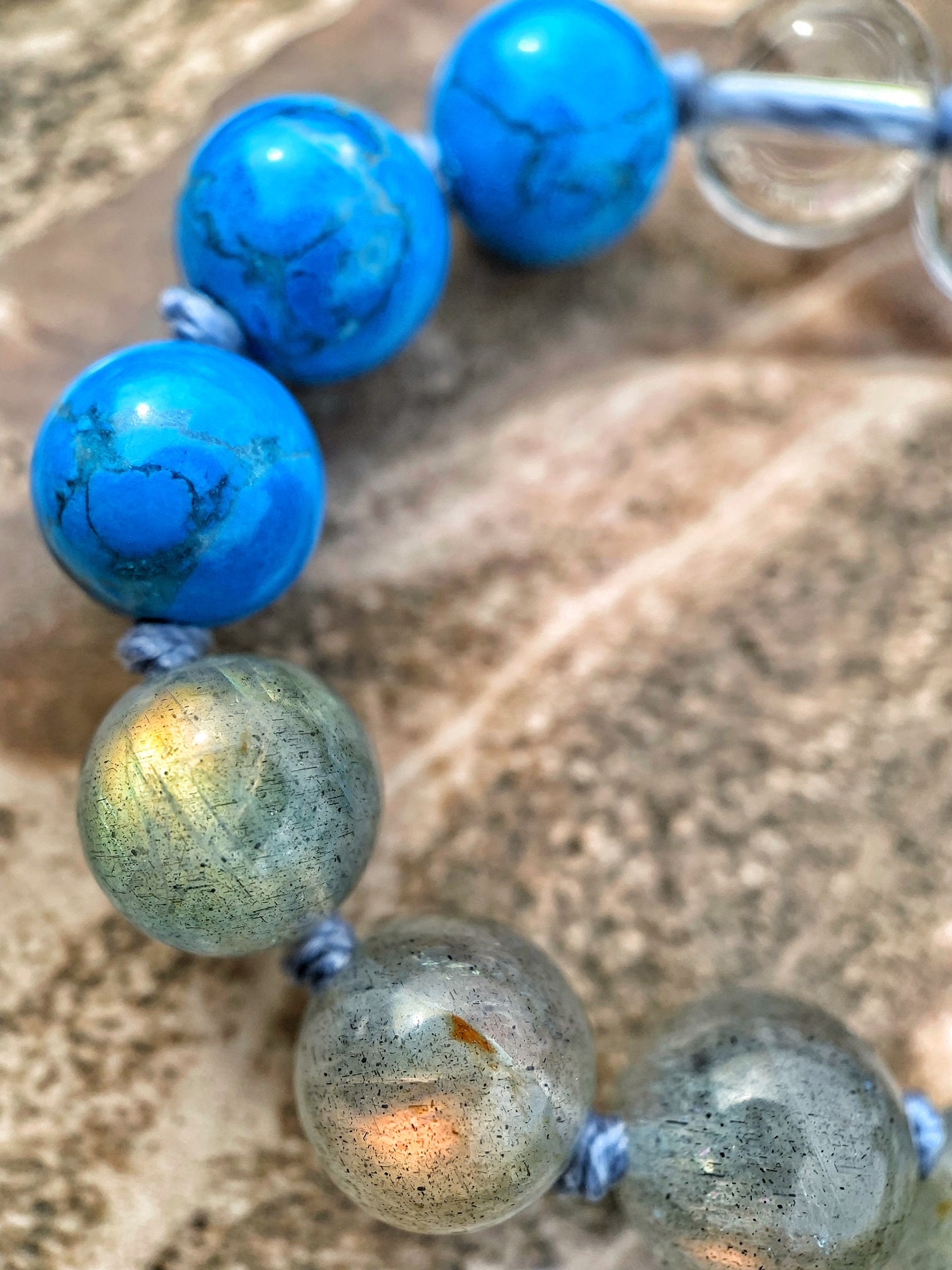 After playing with the Gems, Crystals and Stones I was inspired to create "The Storm Series" ... a three Mala series that portrays the colors and power in a stormy sky. All my inspiration comes from mother earth and my spiritual journey. The concept and manifestation coming directly from nature and symbolism of the mind. The mind is like the open blue sky and emotions are the stormy clouds that come and go.