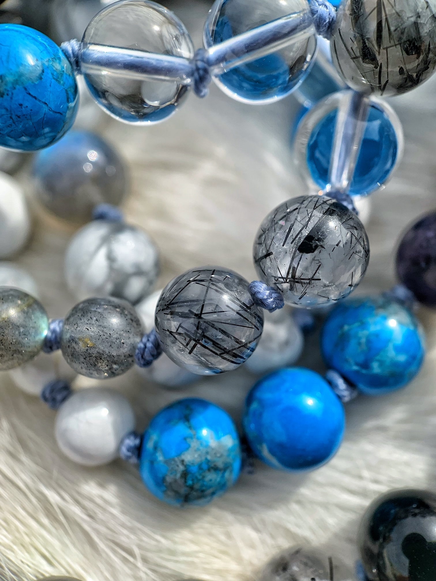 After playing with the Gems, crystals and stones I was inspired to create "The Storm Series" ... a 3 Mala series that portrays the colors and power in a stormy sky. All my inspiration comes from mother earth and my spiritual journey. The concept and manifestation coming directly from nature and symbolism of the mind. The mind is like the open blue sky and emotions are the stormy clouds that come and go.